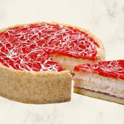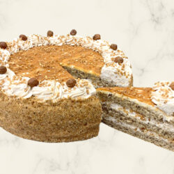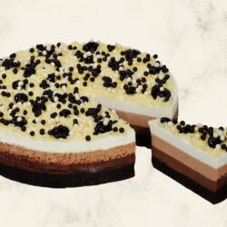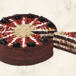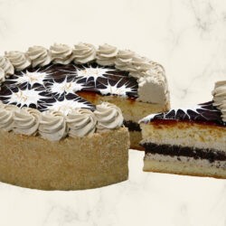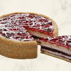 Všechny naše dorty a zákusky jsou naší vlastní receptury a výroby. Na jejich přípravu používáme výhradně suroviny nejvyšší kvality – pravou živočišnou šlehačku, máslo, tvaroh, kvalitní belgickou čokoládu. Korpusy vlastní výroby z čerstvých vajec, čokolády, oříšku.