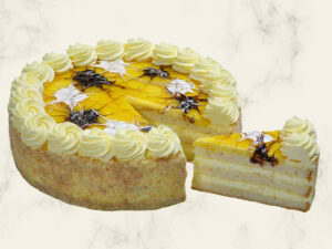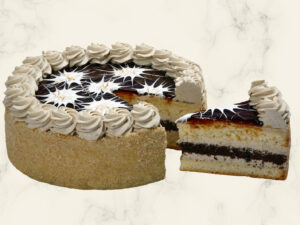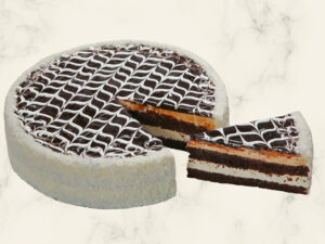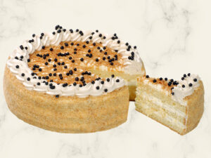 Banánovo-karamelový dort – jehož základ tvoří vanilkový piškot, který je spojený lehkým a nadýchaným šlehačkovým krémem s banánovou příchutí. Vršek dortu je zdobený banány, které jsou přelité velikou dávkou výborné karamelové polevy.